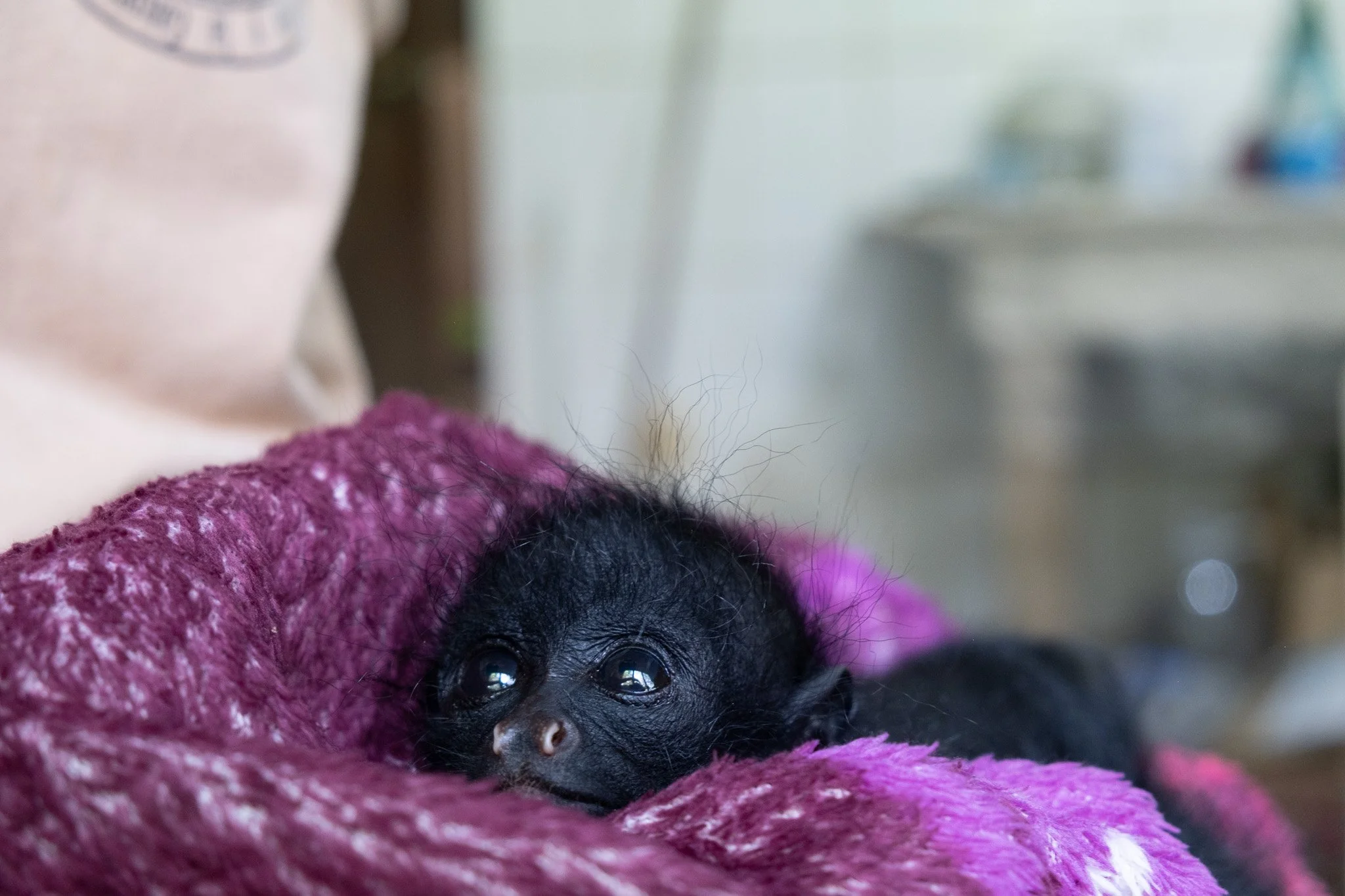 Taïmu is one of the few baby monkeys at the center who will live out his life from birth to adulthood free in the wild. His mother, Mika, was rescued and released by ONCA rescue center.